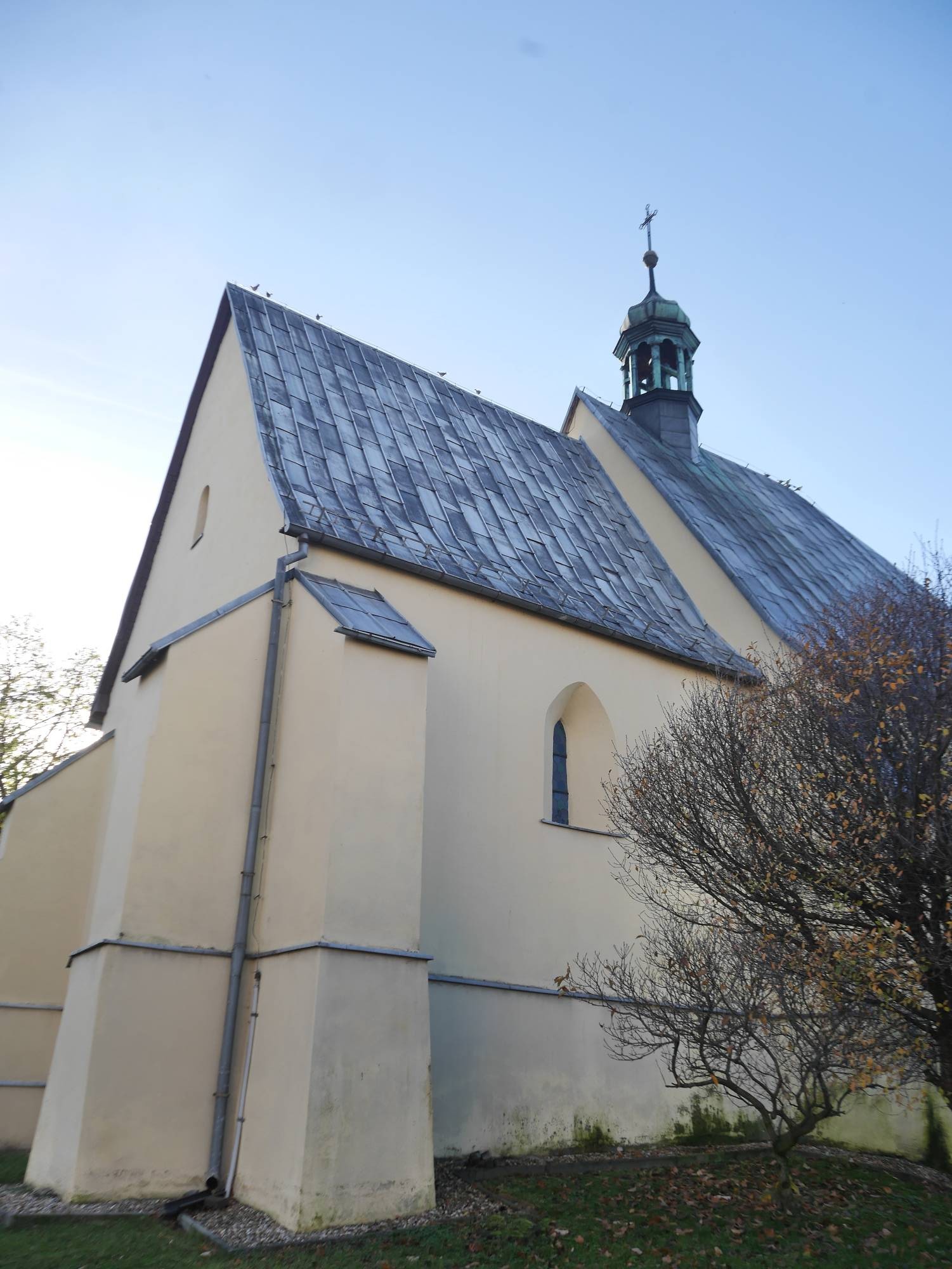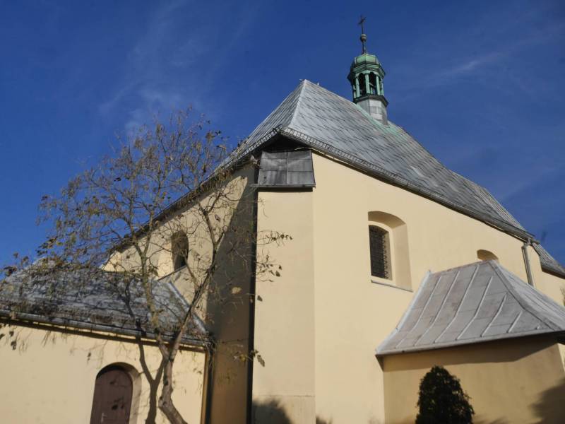 Kościół jest orientowaną, kamienną budowlą wczesnogotycką. Wnętrze skrywa bogatą historię świątyni. Zachowały się ślady malarstwa romańsko-gotyckiego oraz późniejsze przemalowania i nawarstwienia. W prezbiterium, na ścianie szczytowej i po lewej stronie, znajdują się cenne polichromie z XV i XVI w., odkryte w 1936 r., a następnie zabezpieczone i odrestaurowane w 2004 r.