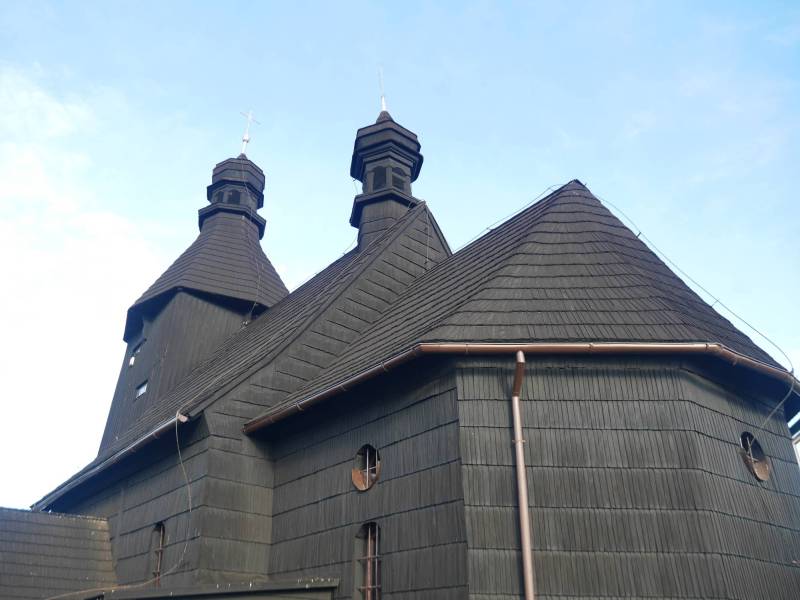 In the following years the church was repaired several times. In 2012, a 50th anniversary of the consecration of the restored church was celebrated. The church in Szczepanok is a wooden log building with a tower and an octagonal lantern above the nave. The main altar and side altars date from the 18th century, the interior is decorated with Baroque sculptures and paintings. Thanks to the efforts of Anthony Piontek and the local community, the church has become one of the most valuable wooden monuments in the region, combining the history of Szczepanok and Polish Nova Vieska.